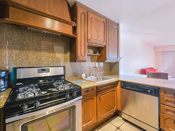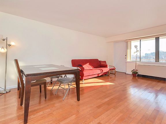 Beautiful bright and spacious unit facing south with partial river and NYC views. Custom kitchen with granite counter-top, wood cabinets, and newer appliances. Hardwood floors throughout. Comes with one parking space(#144). Building amenities include: Tennis courts, Outdoor pool, Gym, 24HR Doorman & gate house security. Conveniently located on River Rd., with NYC bus in front of the building, near Edgewater ferry, shops, park, and restaurants! Tenant lease ends in May 2017.