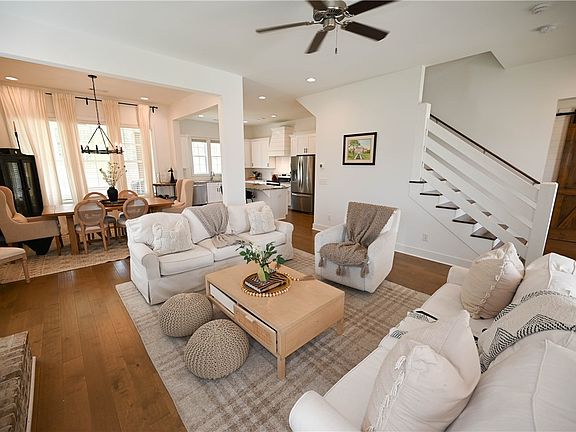 Inside the loop! Super convenient access to Auburn University, shopping & dining! Two bedrooms & 2 bathrooms on the main level. Covered front porch, covered patio & fenced back yard. Light and airy kitchen opens to the dining area & living room. Living room features hardwood floors & a cozy fireplace. Kitchen boasts a large center island, tiled backsplash, kitchen window & nice sized pantry. Primary bedroom is spacious & features a soothing accent wall & a wall of windows. Primary bath includes 2 closets, linen closet, double sink raised vanity, tiled step in shower, freestanding soaking tub & water closet. Upstairs includes a very large guest room complete with private bathroom, two bedrooms sharing a Jack-n-Jill bathroom & another super room with walk in closet that could serve multiple uses: playroom, den, workout room! Lovely design features throughout including upgraded lighting package, accent barn doors, tall windows & trim! Charming home with lots of space! Welcome home!