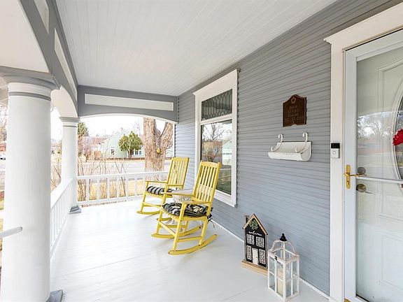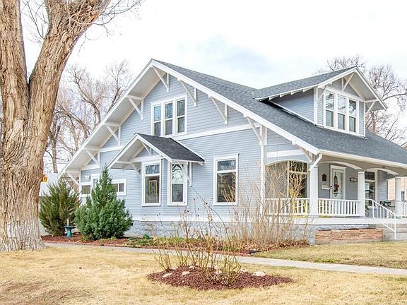 Looking for a charming home in Montrose? Look no further! This eye-catching corner lot has an inviting historic two-story home that features a beautiful exterior with delightful curb appeal. Built in 1913, this 2,561 square foot, Cape Cod style home has 5 bedrooms and 2 bathrooms PLUS a bonus flex room that could be used as an office or a 6th bedroom. The 240 sq ft front porch and mudroom in the back of the home add even more living space. The main level has a large and expansive floor plan opening into the living room and flowing into the spacious dining room boasting the beautiful double-paned argon gas windows (which are throughout the house), topped with the original beveled glass windows. Once in the bright and airy kitchen, notice the amount of storage the custom Schuler kitchen cabinets offer, new appliances, new hardware, and new faucet. Ample Corian countertops offer a lot of workspace along with the functional island all around the breakfast nook that is surrounded by windows with a view into the backyard. Off the kitchen is a second living space, followed by 2 bedrooms, a bathroom and a space for storage under the stairs. Once up the original hardwood stairs you will see more of the original hardwood flooring and will come upon a beautiful and window filled space. The landing is a bright open flex space with more double-paned argon gas windows. Upstairs is home to 3 very large bedrooms each with large closets, plus a library/office/bonus room, landing, and a full bath. There are 2 washers and 1 dryer in laundry room which is in the basement and has a ton of storage, including a room that has the old coal shoot for the old coal stove (non-functioning) In the backyard you will find a large, fenced in back yard with sprinkler fed lawn, including a swing set and playhouse/ chicken coop. Don't miss the garden areas complete with white raspberries, beautiful rose bushes, herb garden, apple tree, tulips, irises, columbines, and more! Plenty of street parking, plus a detached garage which is the original carriage house. Most recent updates include a new roof by JV Roofers, new carpet, light fixtures and remodeled upstairs bath (new vanity, flooring, and shiplap) in 2024. New kitchen appliances and newly painted cabinet exterior in 2023. Some of Montrose’s founding fathers called this house their home, as well as prominent bankers and businessmen including J.F. Warren. An updated house of this quality and vintage rarely comes available on the market, come take a tour today!