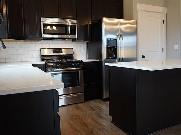 Accepted Offer with Contingencies. Just completed. A New Home in a New Neighborhood. Vaulted great room with engineered wood floors. Kitchen with Birch cabinets, soft close drawers, 3 cm granite counter tops, SS appliances with gas range. 95% energy efficient gas furnace and air conditioning. Front and rear porch with knotty Pine soffits, fully trimmed windows, enclosed soffits. Finished garage, auto. opener, keyless entry. Front yard with automatic sprinklers.