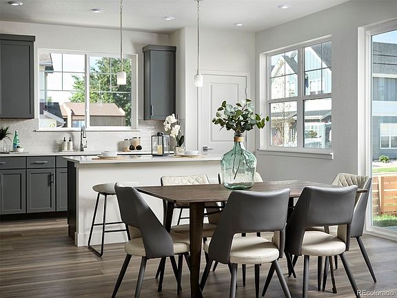 Brand New Maintenance Free Home Ready Now!! Buy now and receive $20,000 for financing towards a rate buydown and/or closing costs with preferred lender. The Chestnut by BLVD Builders features an open concept floor plan with a spacious great room, 2 story dining room and upgraded design finishes throughout. The kitchen features an island and large walk in pantry and Aristokraft® 42” painted stone gray cabinets with dovetail and soft-close drawers, sterling nickel bar pulls and quartz counters with 3”x12” full height backsplash. Other design finishes include expansive 9” EVP flooring, upgraded carpet and tile, 2-panel doors, Delta® satin nickel bath fixtures, Progress® lighting fixtures and so much more. This home is lock and leave, all exterior maintenance is managed by the HOA. Walk to nearby shopping, dining and entertainment, in addition to popular parks and recreation areas. Served by the exceptional Cherry Creek School District.