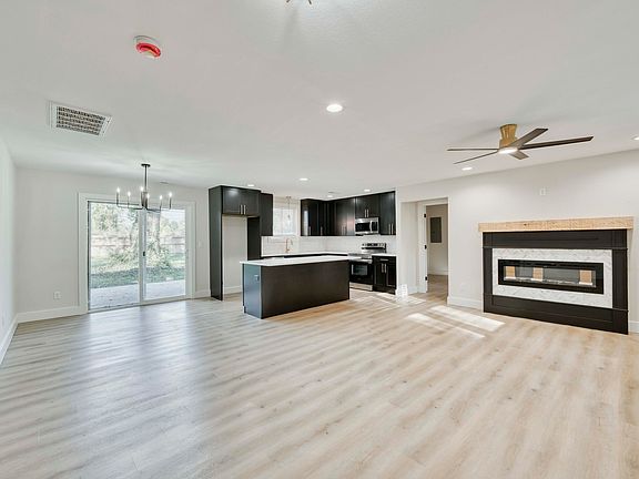 Step inside this beautifully remodeled 3 bedroom, 2 bathroom home featuring a desirable split-bedroom floor plan and modern finishes throughout. The open-concept design seamlessly connects the kitchen and living area, creating the perfect space for both everyday living and entertaining. The kitchen boasts a large island overlooking the living room, stainless steel appliances, and plenty of storage. In the living room, you'll find a sleek electric fireplace accented with tile for a contemporary touch.The spacious primary suite offers a private ensuite with a fully tiled walk-in shower and a generous walk-in closet. Two additional bedrooms share a full guest bath. Outside, enjoy a large parking pad, a fully privacy-fenced backyard, and fresh landscaping that enhances curb appeal. With all-new updates inside and out, this home is move-in ready and waiting for you!