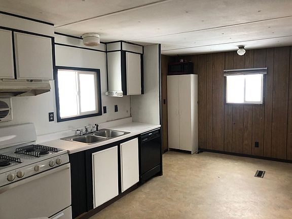 One level mobile home with three bedrooms and two baths.