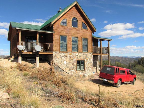 On top of the world in this COLORADO TREASURE!! Secluded, 3BD/3BA custom 1.5 story 2600+sqft home w/ a basement on 46+ gorgeous acres in a gated ranch community! Views of the Sangre De Cristo mountains & the tip of Pike's Peak! Phenomenal woodwork & craftsmanship includes hardwood flooring from PA, cherry trim & solid wood doors! Amazing vaulted living room w/ stunning stone accented pellet fireplace w/ cherry mantle & fantastic windows to capture the views! Fabulous kitchen boasts beautiful custom soft close curly maple cherry cabinets w/ sugar maple knot inserts, granite counter tops, large island w/ breakfast bar, built in dishwasher blended as cabinetry & black composite granite sink! Master suite w/ walk out to private balcony, large walk in closet, adjoining full bath has heated floors, large jetted tub & walk in shower! One of a kind stair case w/ a 400 year old piece of Cypress starting the entrance leading to the upper level loft w/ built in Murphy Bed & dressers & additional private deck! Partially finished basement includes large bedroom, full bath, office & unfinished room w/ a wood burning stove w walkout & huge unfinished storage room! Large 30 x 40 2-Story workshop!