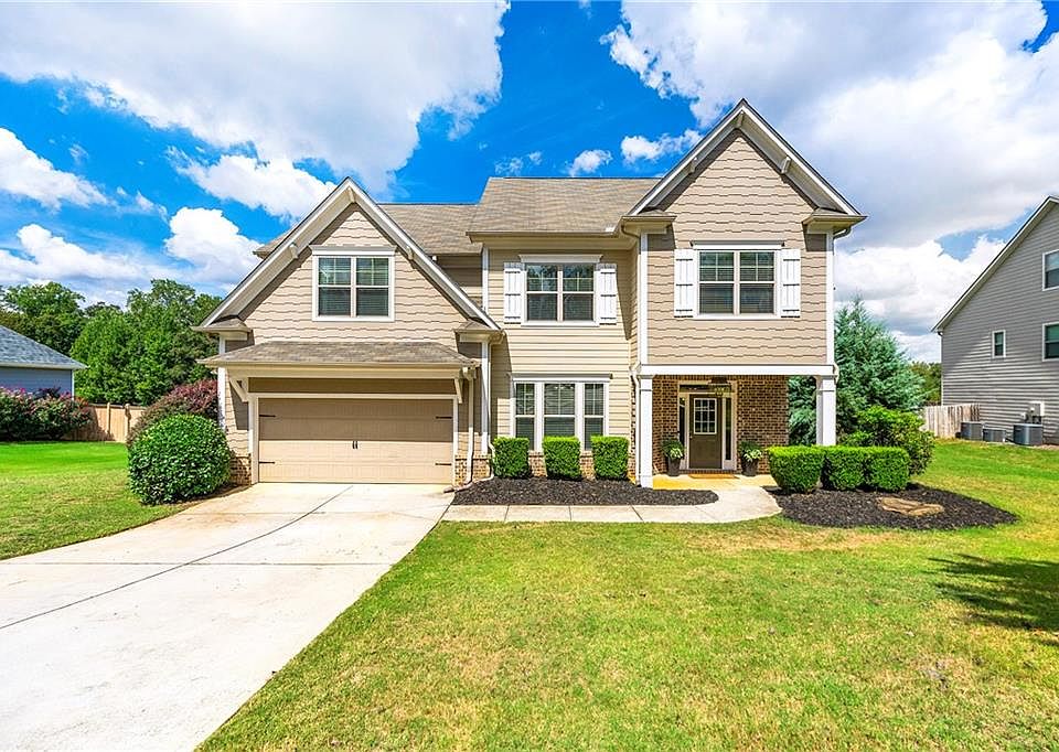 Yes you CAN buy this house with no money down using a USDA loan! Contact our preferred lender, Kristen Maddox with Johns Creek Mortgage and get all of the details! Ask us about the Seller Interest Rate Buy Down that will save you hundreds of dollars each month and tens of thousands during the first 2 years! This house has everything you need. Adorable craftsman style two story home with a ¾ acre fully fenced back yard. Cute rocking chair front porch lets you wave to your friendly neighbors. Grand, 2 story Foyer shows sophistication as you warmly greet your guests. In this home, the Kitchen is truly the heart of the home and is open to the Breakfast area and Family Room with beautiful stained wood cabinetry, stainless appliances and gleaming granite countertops. The huge Kitchen Island helps keep those serving platters handy for meals in the Breakfast Area and those game day nibbles handy on the bar while you’re watching the game (go Dawgs!). The built-in bookcases and gas log fireplace in the Family Room wrap you in warmth and comfort all year long. Entertaining family and friends for those dinner parties is a breeze in the formal Dining Room with stunning Coffered Ceilings. Your guests can stay over in the full Bedroom Suite on the Main with its private Bath, or it can be a great space for a Home Office. Extra recipe, office or homework nook in the mud/drop area. The journey continues Upstairs to the huge Primary Bedroom, accented with French door entry and Trey ceilings. Morning routines are a breeze in the Primary Bath featuring Dual Vanities, Stained Cabinetry and Marble Countertops. Relaxing spa routines are made possible with the large Soaking Tub and the separate expanded Shower. Spacious Walk-In Closet has plenty of room for all of your storage and wardrobe needs. This home has a very large Media Room for movie or game nights with a Storage Closet for all of those board games and video games. Three additional spacious Secondary bedrooms add to the upper level and provide plenty of space for family bedrooms or an upstairs office. Full laundry room finishes off the upstairs. Come see this one for yourself!