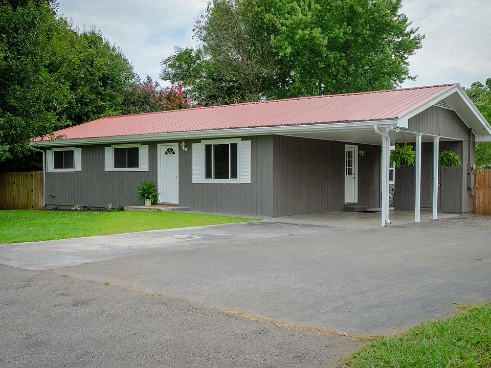 Move in Ready Ranch with sunroom, carport, extra parking & large privacy fenced backyard! This home has just been completely painted inside and out, with new flooring, fixtures, drywall, doors, the list goes on! The bright living room greets you with new Amber Oak LVP also in the hall, bath & kitchen. You'll enjoy entertaining family & friends in your brand new kitchen with new stainless appliances, including microwave, range, dishwasher & side by side refrigerator, new cabinets, new counters and oversized Pro Inspired Kohler sink & faucet! The handy Pantry & Laundry closets offer convenience & extra storage. The beautifully tiled sunroom will be your favorite room in the house and it walks out to the deck and oversized yard. The primary bedroom has a walk-in closet and all 3 bedrooms have new carpet, fixtures and blinds! The full bath has a new counter height vanity, new toilet, new mirror, light bar & fan. Park out of the weather or entertain outside under the carport. Store your bikes, lawn equipment & outdoor toys in the attached shed, or in the storage barn out back! This home is conveniently located just off of Highway 11 in Cleveland. Owner is licensed Broker in Kentucky