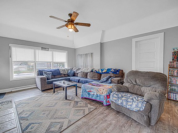 Home for the Holidays! This spacious corner-lot bungalow is wrapped up and ready for its new owners - just in time for the holidays! Step inside to find 3 generous bedrooms, 1.5 baths, and a bright living room with high ceilings and sunlight streaming through every window. The eat-in kitchen is perfect for holiday cookie baking, while the main-floor laundry and roomy mudroom make everyday living a breeze. Downstairs, an unfinished basement offers plenty of storage space, and out back, you'll find a fenced yard with a poured patio, shed, and room to play or host festive gatherings. Conveniently located near parks, schools, and local favorites -- plus a handy U-shaped drive for easy comings and goings. This move-in-ready bungalow is the perfect gift to yourself this season!