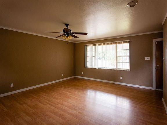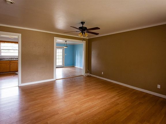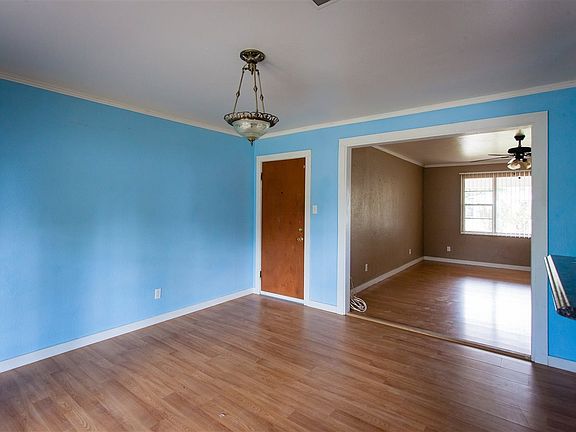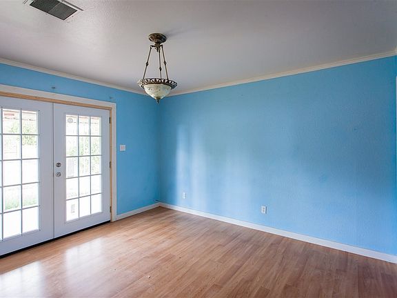 CUTE HOME W/UPDATES. Kitchen has stainless steel appliances & is open to the dining room. Wood laminate flooring throughout. Bedrooms have good size closets. Large backyard. Sprinkler system in the front yard. It has new French doors to back yard.