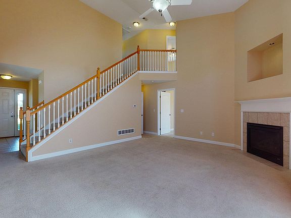 This plan combines many hard-to-find features at this price point, including a 1st floor primary bedroom suite, 2-story central great room, versatile finished basement (plus loads of storage), and a convenient location across the street from neighborhood walking/bike path and common area with pond. The 6.1-acre Turnberry Ridge Park is also less than than 2 blocks away, complete with playground and walking path. The versatile floor plan offers a front dining/flex room with double windows. The floor plan revolves around the central 2-story great room with a wall of windows, high efficiency sealed gas fireplace, and open stairway. The kitchen features granite counters that were just installed in July 2020, along with a newer stainless refrigerator, and ceramic tile floor. The kitchen features 9-foot ceiling and French doors opening to the deck and backyard. The 1st floor bedroom suite features an oversize corner whirlpool tub & separate shower, along with double vanities & walk-in closet. The 2nd floor offers 3 additional bedrooms & a shared hall bath. The finished basement has most recently been used as a fitness studio, and offers tremendous potential for gaming, theater, or a 5th bedroom (with an egress window already in place). Home offers and HWA 13-month Home Warranty! See HD photo gallery & 3D virtual tour!