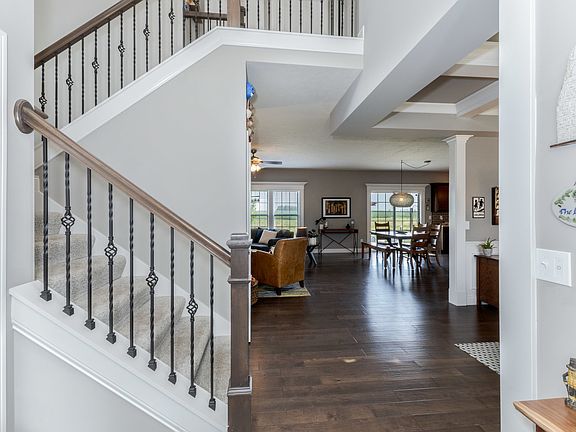 Gorgeous 2 story home in the Grove on Kickapoo Creek. Beautifully landscaped and fenced in yard with no backyard neighbors. Direct trail access. Open floor plan with a 9ft ceiling Family Room w/stone surround fireplace. Custom ceiling in the Dining Room, Beautiful hardwood floors. Spacious eat-in kitchen with many cabinets, center island, pantry, tiled backsplash, gas stove, granite counter tops & tile flooring. Spacious master suite w/huge walk in closet converted into an amazing office, additional walk in closet, Bath with whirlpool tub, tiled surround shower and 2 sink vanity with granite tops. 3 additional bedrooms and a full bath with a 2 sink vanity. Wonderful Basement offers a large Family Room, Bedroom, full bath and a storage room. You won't want to miss this wonderfully maintained home!!!