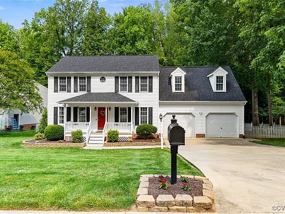 Welcome to this lovely Midlothian home located off of Lucks Lane with .41 acres!! Super convenient to Rt 288, Powhite Parkway, Midlothian Turnpike, shopping, restaurants, and hospitals!!! AMAZING BACK YARD for all your entertaining needs: deck, huge paver patio with built-in cooking station (grill and refrigerator included), built-in seating, HOT TUB, wall mounted TV, large kids play set, shed, and fenced yard backing to woods!!!!! NEW ROOF, SKYLIGHTS, CARPET! NEW PAINT throughout first level and upstairs hallway and 4th bedroom! Spacious family room with access to the deck! Formal dining room off of the foyer! Laundry room with NEW washer and dryer! Rear staircase leading to four bedrooms. Spacious primary suite and beautiful UPDATED BATH. The fourth bedroom is HUGE!!!! Oversized 2 car garage with overhead storage and built-in work benches!! Don't miss this charming home!!!!