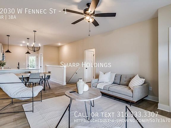 **MODELS OPEN MON-FRI 1-4 AND SAT-SUN 11-2** MOVE IN DATES FALL 2024 AND SPRING/SUMMER 2025! Beautiful and Modern Chuck Plan with 5 bedrooms, 3 full bathrooms and 2 car attached garage, Fox Creek Subdivision in Maize School District near 37th & 119th close to New Market Square. The home features quartz countertops, tile backsplash, luxury vinyl flooring, and neutral finishes. Kitchen appliances excluding refrigerator are provided. Tenant pays all utilities, HOA is responsible for mowing and the sprinkler system. Security deposit equal to one months rent. Maximum 2 pets are allowed with pet deposit equal to 1/2 one month rent and $25/pet monthly pet fee. All adults occupying the property must complete an application. Applications are processed on a first come first serve basis, and will not be processed until they are fully completed. At least one year rental/ownership history with reference is required, 3x's gross income to monthly rent ratio, credit and background review. Co-signer may be required if one or more of the above requirements are not met. Other floor plans available that are currently under construction. Photos/renderings are of previously built units of same floor plan, finishes may vary. FOX CREEK HOUSES DO NOT HAVE FIREPLACES Visit ICTTownhomes DOT COM for all available new townhome areas.