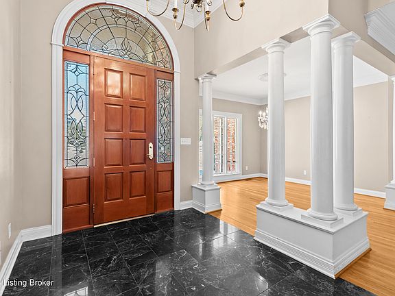 Nestled on one of the most desirable streets in Prospect, this home is located in the highly acclaimed Oldham County School District. Set within the Estates of Hunting Creek, this property offers the perfect haven for families or entertainers alike. While enjoying the perks of a well-established neighborhood, you'll also love the privacy and serenity this home provides. Step inside to discover an inviting layout designed for both comfort and functionality. The great room boasts soaring 14-foot ceilings, filling the space with natural light. The spacious kitchen flows seamlessly into the cozy family room, and just steps away, you'll find a bright and airy sunroom—perfect for morning coffee or unwinding with a good book. A practical mudroom and laundry area are conveniently located off the garage entry. The first-floor primary suite provides a private retreat, while the second level houses three generously sized bedrooms. The finished basement is a dream, featuring a bar/media room perfect for movie nights and a guest suite. Outdoor living is just as impressive, with a sparkling pool, a lush lawn, and a peaceful creek creating your personal sanctuary for relaxation and play. One of the standout features is the roof installed May 2023, offering both style and peace of mind for years to come. Safe in basement will remain - Seller is offering a $1080 1 year home warranty from First American. Don't let this rare opportunity pass you by!
