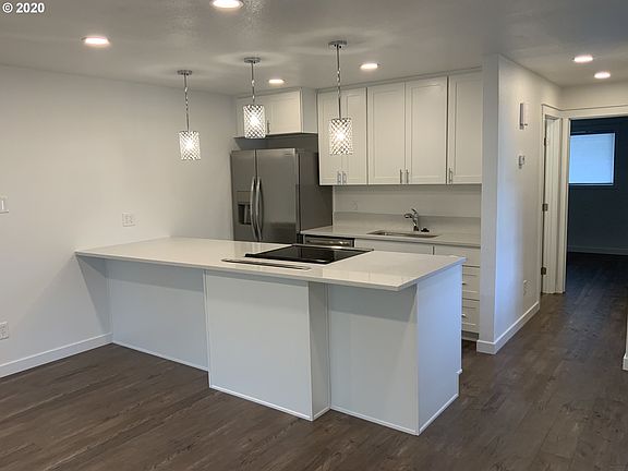 Hayden Island, 1 level condo at Jantzen Beach Village, end unit, ground floor, totally redone high end, HGTV style, quartz counter, lg island, stainless appliances, washer, dryer, refrig included, walk-in shower, dbl closets in bedroom, French doors to covered patio adjoining common area. Resort style living 2 blocks to Columbia River, pools, tennis courts, rec rm, close to shopping, , parks and PDX, deeded pkg space #47,