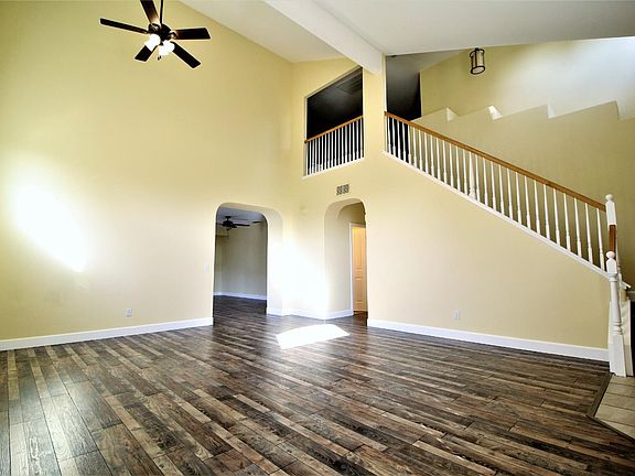 This 2905 Sq Ft home would be a great place to live for a Big Family! The home has five bedrooms with a master bedroom located downstairs and a master bedroom located upstairs, that's right you chose where you want to sleep. The home has laminated wood floors throughout except for the bedrooms they have carpet. Your family can enjoy a beautiful backyard that has a view of the golf course and lake. The gated community offers 24 hour security so your family feels safe and comfortable. Don't miss this turn key jewel located in the Green Hill's gated community!