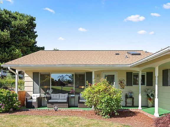 New enclosure on back patio to increase your entertaining experience! Come view this charming, one-level home in serene 55+ community with golf course views! Exclusive neighborhood offers golf, pool, rec facilities, & more! Home has been tastefully remodeled with new flooring, carpet, paint, new back patio and offers a tranquil retreat indoors and outdoors with calming views. The kitchen has been updated with new cabinet facings, paint, counters, and High-End appliances plus island for extra work space. Two spacious bedrooms, ample closet space, and a warm inviting living room with wall of windows. Outdoors, this corner lot boasts a larger space than most with a new fence, custom covered patio for entertaining, fresh landscaping, and plenty of space for your friends. Newer 50 year architectural roof, heat pump, and converted garage to artist's studio with heat/cooling source, removable carpet, and insulated ceilings. This meticulously maintained home showcases easy, one-level living in a welcoming community!
