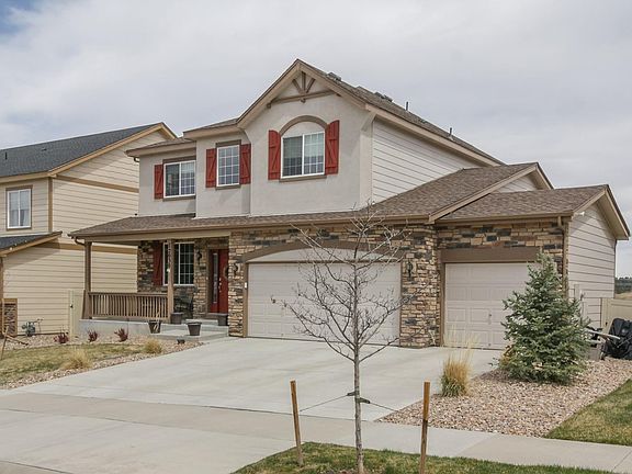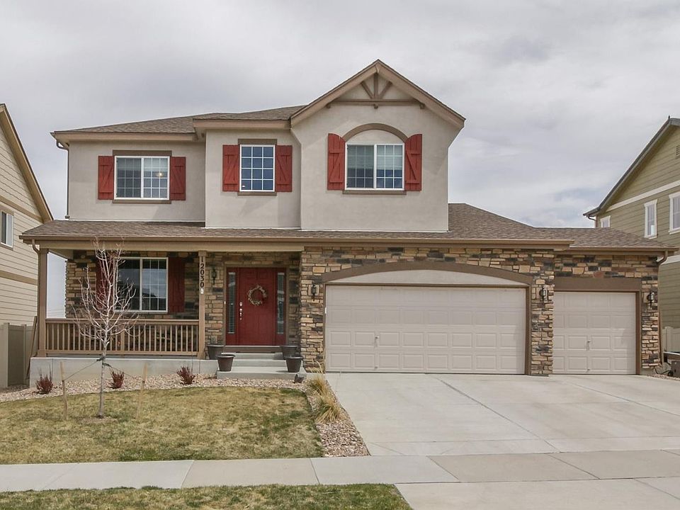 Gorgeous 5 bedroom home in south Parker. Experience true pride in ownership in this immaculate home with upgrades in every direction. The beautiful, custom kitchen with slab granite, custom lighting, double oven, gas cook-top and new dishwasher is just the beginning of the impressive features. The main level offers hard wood floors throughout, with a formal dining room, office and living room which leads out to an oversized deck. Upstairs find spacious bedrooms with a large master and luxurious 5 piece bath. Head downstairs for an evening of entertainment in the finished basement. The raised theater seating floors stay with the home, as well as the hidden surround sound speaker system. There is plenty of room for a game of pool, and an additional bedroom for guests. Outside the upper deck offers beautiful views to the east, with front row seating for the annual Independence Day firework shows. The oversized 3-1/2 car garage provides plenty of space for cars, toys and storage.