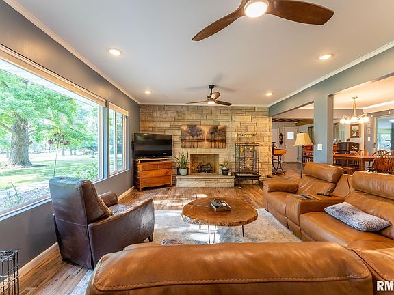 BEST OF WORLDS! Beautiful and Spacious home located on 6 acres on the edge of town. Acreage is partially wooded with a stocked pond. Home features 3 bedrooms/2baths, living room and family room with fireplaces, large updated kitchen, super nice laundry room, 3 season room perfect for family fun times. Basement provides a great area for a work shop or hang out space. Many updates in the past 7 years include: Roof, Siding, Soffits, Commercial Gutters, Windows, Flooring, Furnace/HVAC, Water heater, Electric Box, Breaker Box, Kitchen Cabinets, Counter Tops, High End Appliances and much more! Detached garage provides storage for fishing gear, lawn mowers or a work area. Amazing move in ready property your family will love!!