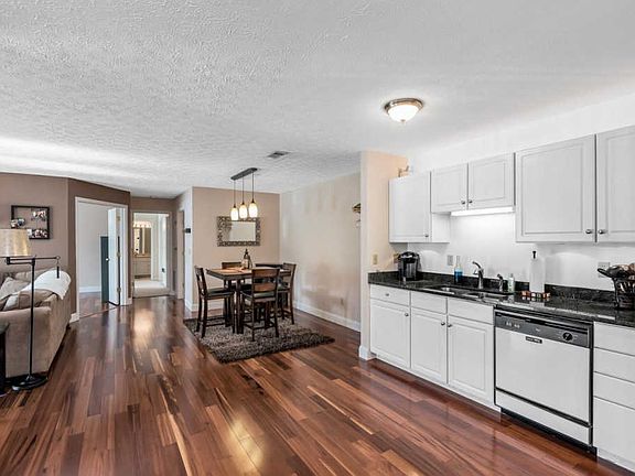 Beautiful first floor condo with gorgeous hardwood flooring throughout the living room, dining space and kitchen! Open concept floor plan with tons of natural light and walk-out from the living room to the patio. Large study with french doors could be used as a third bedroom. Master bed with en-suite bath and walk-in-closet. Attached garage.