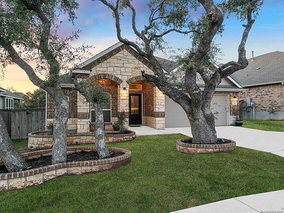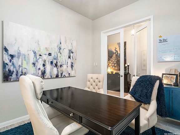 LOCATION, LOCATION, LOCATION! This gorgeous one-story smart home is nestled in the beautiful community of Fronterra at Westpointe with plenty of character. Magnificent home with obvious pride in ownership situated on a premium green belt lot, over 2000 sq ft of living area, 3 bedrooms, 2 bathrooms, separate office w/oversized glass french doors, roomy flex room, spacious dining room, soaring high ceilings, 3 sides brick/stone, 5-inch gutters w/leaf guards, tankless gas water heater, sprinkler system, dimensional heavy duty shingle roof, upgraded new carpet installed in all bedrooms 2023, premium stainless steel appliances, and immaculate lavish tile throughout the majority of home. Impressive master bedroom suite to include master bathroom oasis w/separate garden tub & walk-in shower. Opulent kitchen w/island, elegant quartz countertops, custom 42-inch cabinetry, gas cooking, and exuberant architecture throughout. Smart home features control the entry door, garage, oven, master blinds, central air, and irrigation system. Enjoy a visit from the neighborhood deer in this serene backyard w/rear rod iron fence, covered patio, and lovely mature trees. Come and see this charming gem today! Near Lackland AFB, SeaWorld, UTSA, and the Alamo Ranch shopping center! Minutes from major interchanges 1604/HWY 151 and 410/HWY 151.3D VIRTUAL TOUR AVAILABLE.