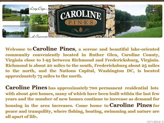 LIKE NEW SPLIT FOYER ON A NICE LEVEL YARD, FULLY FINISHED BASEMENT WITH WALK OUT FRENCH DOORS. NEW CARPET, NEW PAINT THIS HOME IS MOVE-IN READY. LIVING ROOM UP, EAT-IN KITCHEN, 2 BEDROOMS UP & 1 BEDROOM DOWNSTAIRS & BONUS ROOM. HARDWOOD FLOORING IN FOYER, OPEN FLOOR PLAN ON BOTH LEVELS. HOME IS LOCATED ON A QUIET STREET IN CAROLINE PINES & WALKING DISTANCE TO DEJARNETTE LAKE, COMMON AREAS, PLAYGROUND, POOL, BASKETBALL COURTS. CAROLINE PINES IS A NICE COUNTRY DRIVE 5 MILES FROM I-95 BETWEEN RICHMOND & FREDERICKSBURG FOR EASY COMMUTE BOTH WAYS.