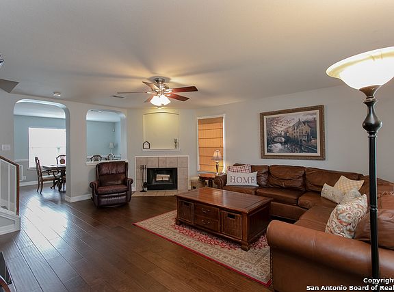 Beautiful 2 story brick home in the amazing subdivision of Helotes Crossing offers 4 bedrooms & 2.5 bathrooms. Open & airy floor plan w/ wood flooring throughout. Large living room with wood burning fireplace. Gorgeous kitchen w/ SS appliances, granite counters & plenty of cabinet/counter space. French doors into the spacious master suite w/ huge walk in closet. Master bath w/ separate garden tub & shower. Roomy secondary bedrooms. Big backyard w/ trees & privacy fence. This charming home is a must see!