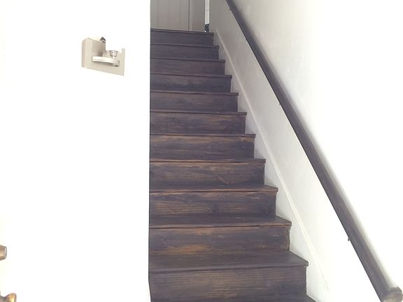 This unit has been upgraded with custom oak cabinets throughout with soft-close doors and quartz countertops in the kitchen and bathroom. Common area flooring is travertine that accentuates an attractive stacked stone fireplace. All kitchen appliances convey and are stainless steel. New lighted ceiling fans in each bedroom in addition to laminate floors. Stairs have been replaced with real wood and stained to match cabinets. Tiled kitchen backsplash was upgraded to marble. All window treatments are new and living room and kitchen have recessed lighting. Hot water heater and pressure valve were recently replaced. Garage is attached for added security, privacy and convenience. Complex offers fitness center, swimming pool and tennis courts. This unit is turnkey. Owner's parents are licensed real estate brokers; representation not needed.