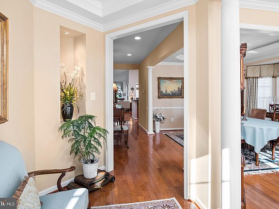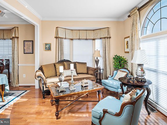 55+ COMMUNITY This stunning home checks ALL the boxes! Spacious, bright and well maintained with 3 beds and 3.5 baths. Step inside this beautiful 3,514 sq ft home to the inviting foyer. The layout is made for easy living on main level including, primary bedroom with en suite bath, office with closet and shelves, formal dining room, living rm, family rm with gas fireplace, sunroom and laundry room. Gleaming hardwood floors and soaring ceilings! Continue into the open eat in kitchen with granite counters, double oven, butler's pantry that make entertaining a delight . Beautiful deck accessible from the cozy sunroom. Lower level has huge finished rec room, a half bath, and 2 large storage areas. Upper level has 2 large bedrooms with vaulted ceilings and connecting full bath. Perfect for guests. Backyard lined with mature trees offers plenty of rare privacy . Many upgrades adorn this spectacular home including speaker system on 2 levels + outside on deck, Central Vacuum, security system, basement cabinets, custom closet shelves in office, custom draperies/ blinds and more! Plenty of storage throughout. Parking in 2 car garage and driveway, snow shoveled by HOA ALSO covers the roof. Best location in the neighborhood to enjoy community pool, tennis, pickleball courts, club house. Minutes from shops, restaurants and grocery stores. Easy access to major roads, Routes 40, 29, I-70 and BWI airport.