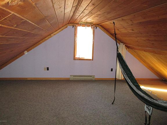 ''Hunting & Recreation Paradise'' 2 bedrooms, 1 full bath home on 22 beautifully wooded acres bordered on two sides by 1400 acres of state land. Rustic charm with main level master, free standing Napoleon wood stove and second bedroom in loft. Double detached garage. Full Kitchen and washer and dryer inside the house.