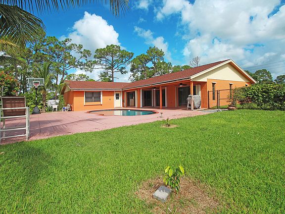 Discover your dream family home nestled in the peaceful rural area of West Palm Beach, Florida. This charming single-family residence offers the perfect blend of country living and modern convenience, with four spacious bedrooms and two full bathrooms. Set on a sprawling 1.25-acre lot, you'll have plenty of room to spread out and enjoy the tranquility of your surroundings. Imagine weekends spent lounging by the large pool or entertaining friends on the open porch and balcony. The backyard offers a lush oasis, complete with a sprinkler system and a securely fenced area designated for RV parking. When you need to venture out, you're just 10 minutes away from cinemas, pharmacies, banks, shopping centers, schools, and the library. Plus, West Palm Beach Airport is only a 25-minute driving This property also boasts a roof that's around 6 years old, ensuring peace of mind for years to come. Don't miss your chance to own