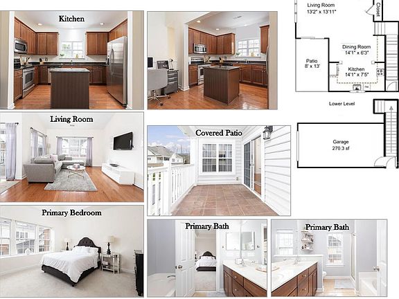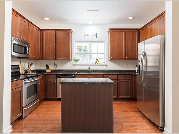 Lots of light, and a great location that's close to everything in South Charlotte, Ballantyne. The kitchen features an island and opens to the main living area. There is a covered patio off the living and dining rooms providing extra space to enjoy some fresh air. Wood floors are featured in the living areas and carpet in bedrooms. Laundry hookups on the main level (a washer and dryer are in place at no extra charge). Enter on the street level or through the garage (with an auto opener) up one set of stairs to the main level. Community pool and lovely open spaces.