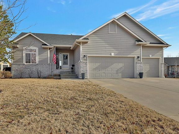 BEAUTIFUL, IMMACULATE, READY TO MOVE IN!! This 4-bedroom, 3-bath, 3-car home on a cul-de-sac will entice you! Open concept, large living room with all white woodwork, new tone-on-tone tiles on the fireplace, windows galore, vaulted ceilings, beautiful light fixtures and complementing floors are perfect! Open to the kitchen with white cabinetry, stainless appliances, rollout shelves, pantry, granite countertops, undermount sink, eating bar AND large dining area with bayed windows. Here you can walk out directly to the deck and enjoy the view of the large yard. The master suite includes a separate bath with tub, shower, dual sinks in the granite countertop, and walk-in closet. Both main floor bedrooms are flanked with abundant linen closets. The other main floor bedroom sits adjacent to another full bath. Laundry is a separate room on the main floor. Going down the steps from the living room you will find the spacious, beautifully finished family room with built-in dry bar and an under cabinet built-in refrigerator. The room has a ground level walk-out to the large stamped patio flanked by brick retaining walls. Back inside are two more bedrooms and another full bathroom, again with granite countertop. The basement has a safe room! Custom blinds are found throughout the home. Walking distance to Seltzer Elementary School. All information contained in the MLS is deemed reliable, but not guaranteed. Please verity school assignments with USD 259 Wichita Schools.
