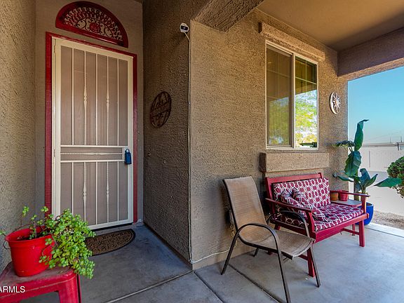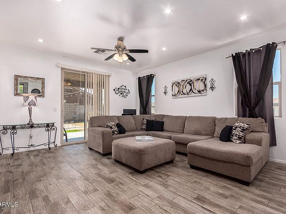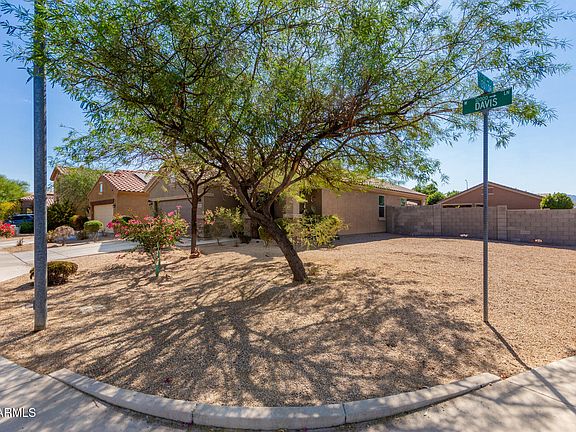 2016 Year Built! Explore this corner lot home that exudes charm! Sweet curb appeal, a stone-accented facade, and colorful desert landscaping are just the beginning. Discover a light & bright interior with open common areas, recessed lighting, wood-style tile flooring, and neutral paint throughout. The kitchen is equipped with built-in black matching appliances, honey oak cabinets, a handy pantry, and ample counters. The main bedroom is split to make it a very private space and offers its own bathroom with a walk-in closet, a step-in shower, and a vanity with a makeup area. Out the back, you'll find a covered patio and so much space for play and growth!