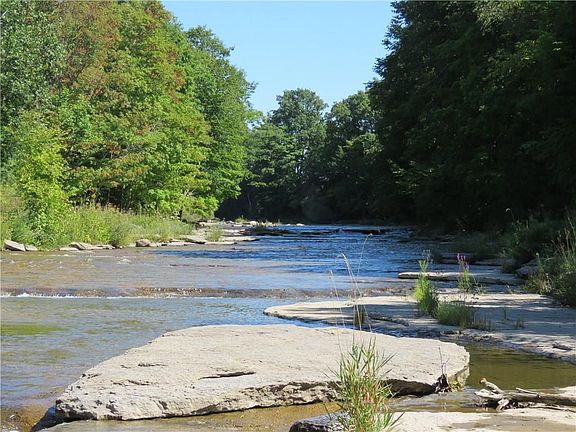 Priced below assessment! Absolutely gorgeous property w/534' of waterfront on scenic Sandy Creek with great fishing & the soothing sound of the water relaxes the soul. Well maintained 1985 3 BR, 1.5 Ba mobile with nat gas & public water. Land includes an approx approx 7+ acre field currently leased to adjoining farm. Home is on slab w/roof over, large deck & Shed. Seller will consider owner financing with $10,000 down. 2 Parcels being sold together. Tax ID 7.3 & 7.1