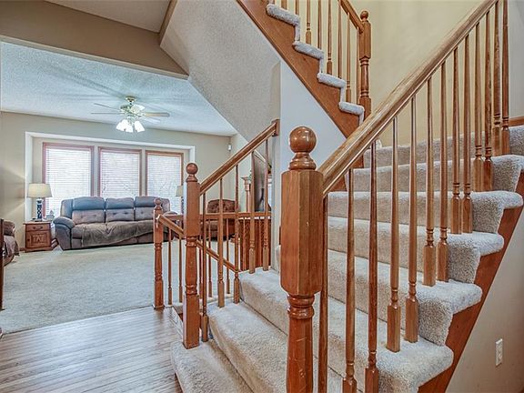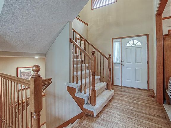 Come see this wonderful family home in coveted Olathe North West school district. This 2-story with 4 bedrooms features a family-friendly great room adjoining kitchen and breakfast area along with a formal dining room. A laundry/pantry area and 1.2 bath complete the main level. Hardwood flooring recently refinished. Upstairs are 4 generously sized bedrooms. The owner's suite features a large bath with separate tub and shower and double vanities. The other 3 bedrooms share a bath with a large vanity, and shower over the tub. The Ravenwood elementary school is .02 miles away-walkable!
