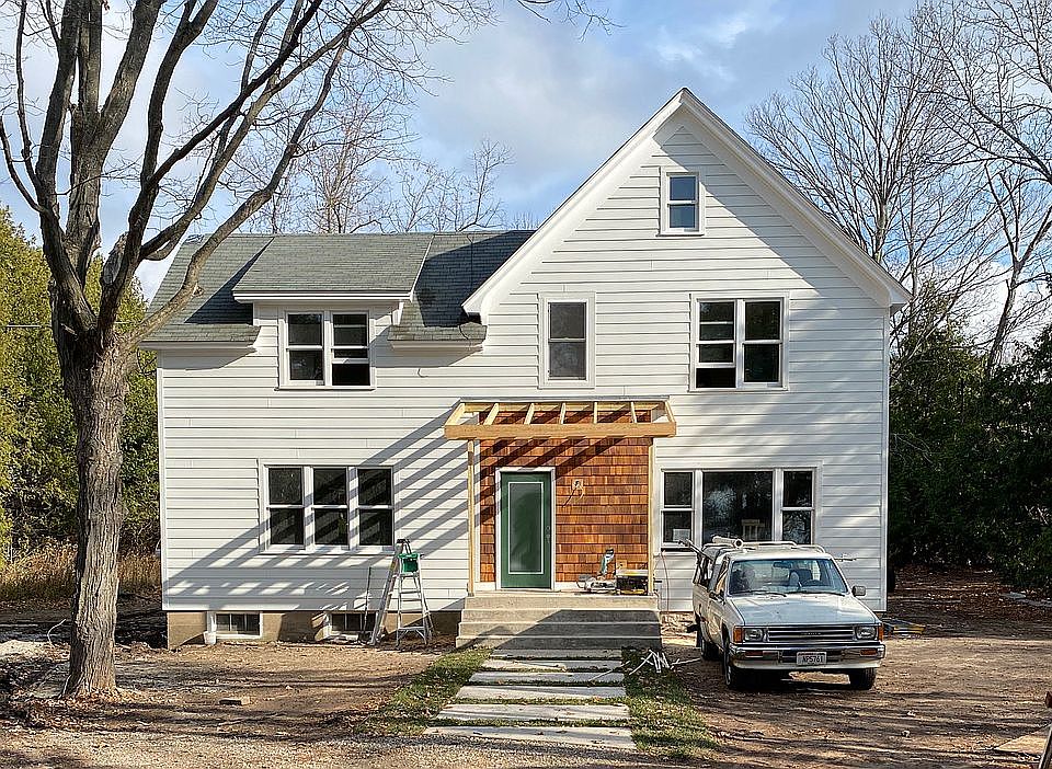 Full remodel inside and out, bottom to top. New floor plan offers beautiful and functional flow throughout. This farmhouse has all the modern features you will love and a little charm of the original 1890 farmhouse. High ceilings throughout. This house is as close to a new house you can get and will be ready to move in by late November 2020. I will work with a buyer's agent. All new furnace, duct work, plumbing, electrical, insulation, interior walls, paint, exterior smart siding, large concrete front porch with overhang and lovely circle drive and walkway, concrete slab in crawl space, wood flooring, carpet, and tile flooring. On the first floor you will find a big gourmet kitchen with pantry, granite counter tops, and an island with seating. A dining room open to the kitchen that can easily fit an extra-large farm table. A gas fireplace in the living area. A small office for your zoom calls (internet cable runs directly in front of house). A separate laundry room and a half-bath that is directly across a large storage closet. On the second level, a beautiful large shared bath with tile floor, 3 bedrooms total (of which one is a private master suite), and a small cozy nook overlooking the front yard. This home also has a newer roof, windows, and septic. Available by November/December 2020. Bring an offer and be warm and cozy by the holidays! Mixed zoning with frontage on both Garrett Bay Road and Hwy 42. Located in downtown Ellison Bay just a short walk to the public marina, stores, restaurants, post office and all the places Ellison Bay has to offer. It will make a great home or rental.