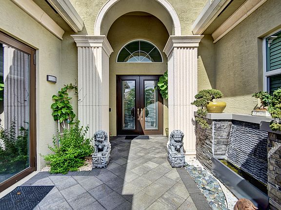Picture yourself in this exceptional home. A jewel in the fabulous Valencia Cove. Magnificently landscaped, gated entry with serine waterfall, glass etched double entry doors. Each room is a grand work of art. From the Morano Glass counter top in the powder room, to the sound padded media/music room. Professionally decorated,w/high end wall units & appointments. Lush tropical landscaped back with soothing waterfall on the patio, overlooking a large lake. this home is ''a must see'', and can only be appreciated by the most discerning buyer.. By appointment only. Reduced to sell!