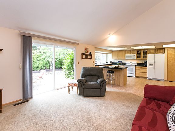 Welcome home to this beautiful, meticulously maintained one level home with updates throughout. Spacious great room with wood burning fireplace and sliding door access to backyard. Kitchen is full of light and there is plenty of cabinets to store all your essentials. Don't want a formal living room - make it a game room, larger formal dining room and use the dining area for your piano or make it a sitting area off the kitchen ~ many possibilities! Large upper 4th bedroom could be used as a bonus/craft/storage/office room or a guest room . Newer systems, fixtures, hardware, heat pump, roof and more. Bring on the BBQs in this private backyard with a rose garden and gated access to a 2 acre private greenspace ~provides all the benefits of having a huge property without the upkeep.