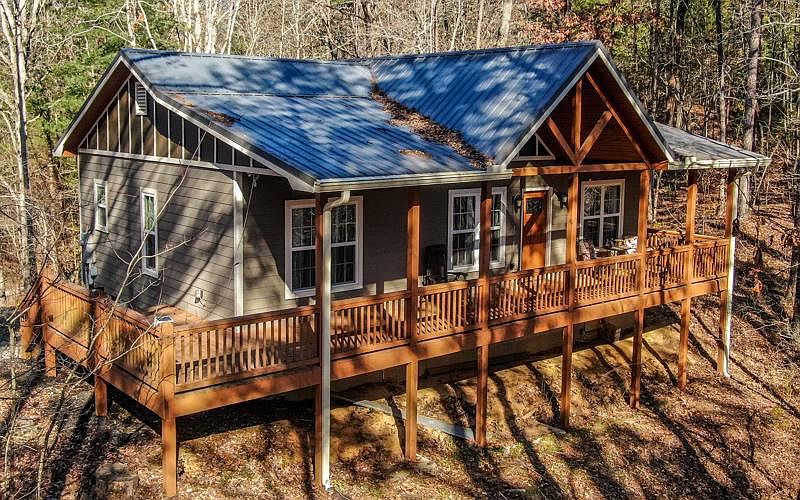 Super charming easy maintenance like new home sitting on almost 4 acres! Smart home. Private wooded setting. Concrete board exterior with all wood interior. Lots of natural light. Open floor plan, two master bedrooms with ensuite bathrooms, tile showers, large closets, granite counters in kitchen and bathrooms. Separate large laundry room. Wood floors. Be sure to notice the wood pallet artwork on wall from local winery Chateau Meichtry's pallets! Metal roof. Lots of usable land which could have an additional home built on it. Close to popular Carters Lake Woodring Branch boat ramp, hiking, mountain biking trails, apple houses. Most furniture can be negotiated.Sale also includes tax parcel 3007B 025. Lots 37,38,39,40,41,42,43.