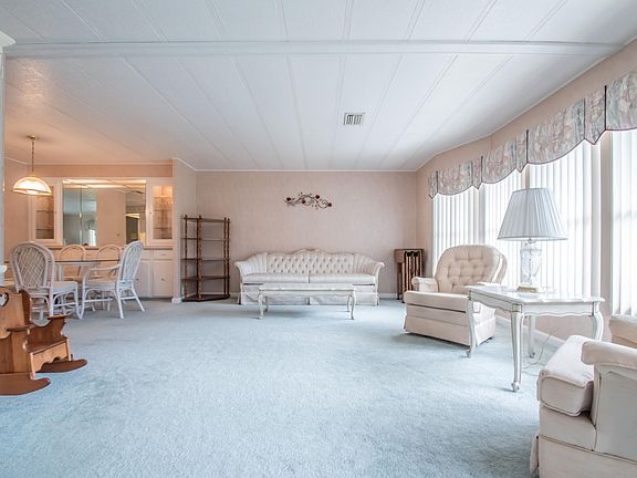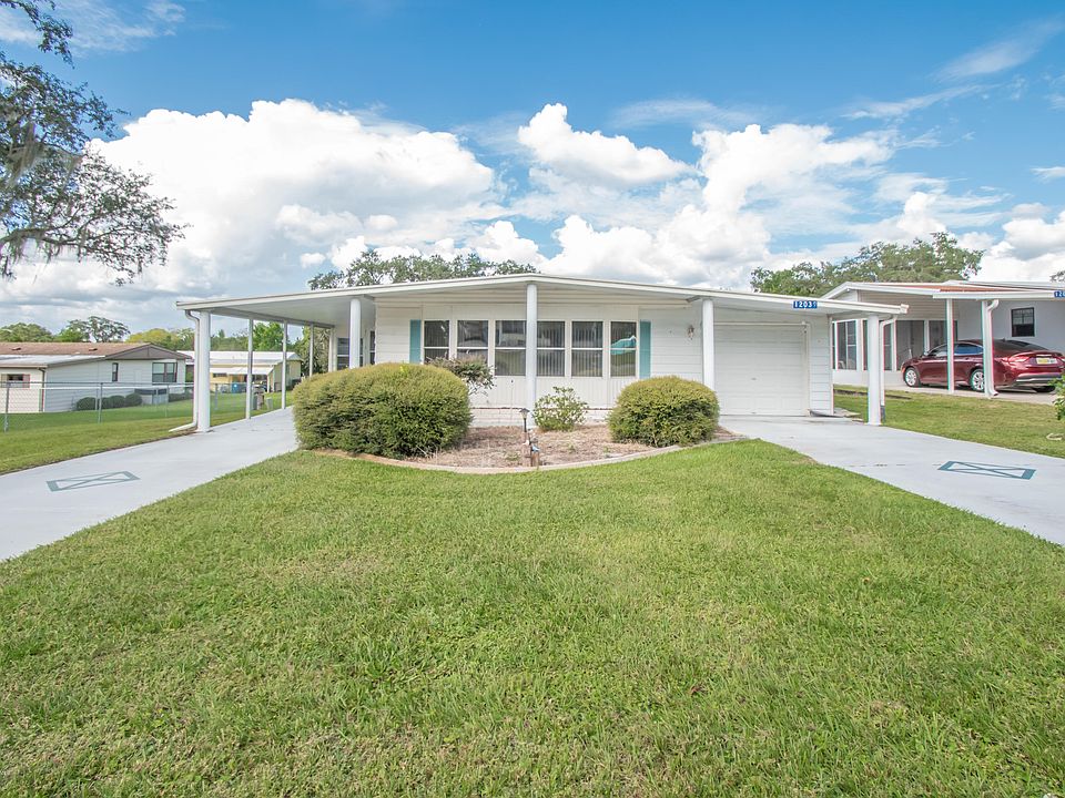 ONE OF THE BEST GOLF COURSE LOCATIONS IN HIGHPOINT! This spacious 2BR/2BA home sits right behind the #14 green and features both a enclosed Florida room and a SCREENED LANAI for you to enjoy the view. Inside you will find 1300ft+ of living area with a large island kitchen, and big master bedroom suite. Outside you'll find a DOUBLE DRIVEWAY & 1-car garage WITH GOLF CART INCLUDED and separate extended OVERSIZED utility room. NEW A/C 2018. DO NOT MISS THIS HOME!!! Located on a quiet street in High Point Golf Community where you OWN YOUR OWN LAND! High Point is an active 55+ community with amenities including TENNIS, HEATED POOL, RESTAURANT, BOCCE, HORSESHOES, SHUFFLEBOARD, and much more. Near major medical centers, shopping, restaurants and entertainment. HOA fee of only $38 per month!
