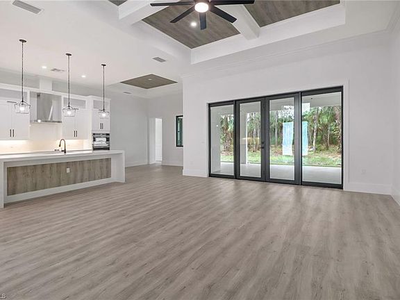 Beautiful and luxurious new custom home located in the serene Golden Gate Estates. This home has 2,486 sqft of living area and 3,855 total sqft and offers 4 bedrooms plus den, 3 baths, a oversized 3 car garage and lanai. The oversized great room has beautiful tray ceilings and view of backyard and open floor concept that leads to the gourmet kitchen. The kitchen has large island with waterfall quartz countertops and backsplash, and stainless steel appliances with dual ovens in wall. The master bedroom has tray ceilings, french doors leading to lanai, and large his and hers closets. Leading to master bath, you can spend blissful evenings soaking in the free standing tub. Master bathroom also offers dual vanities, floor to ceiling tile, picture window and large tile shower with rain showerhead. The house is also equipped with reverse osmosis water system.