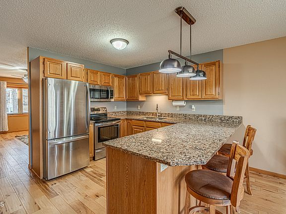 If you are looking for a renovated, move-in ready twin home in a quiet neighborhood, this is it! This charming 4 bed, 2 bath home has everything you need for comfort and convenience. The main floor features beautiful wood flooring. The kitchen has a large peninsula for extra seating, granite countertops and ss appliances. The spacious dining area has a patio door to a maintenance free deck. Rounding out the main floor is the primary bedroom, which has sink area for extra ''getting ready'' space, bedroom 2, an updated full bathroom and laundry. The basement, which was recently finished, is ready for entertaining or relaxing! You will find a family room along with an area perfect for a game table with a wet bar (and a dishwasher)! There is also a 3/4 bathroom along with 2 bedrooms (egress windows being installed!) The attached 2 car garage is finished and the home has newer windows and LP Smart siding! Call today for a private showing!
