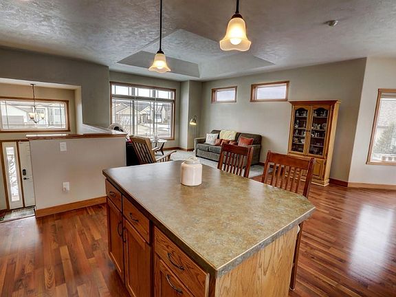 Have you been waiting for a home in John Hoeven School District? Now available is an absolutely charming home located on a cul de sac just a short walk from the school. As you pull into your heated garage you have the option of entering the foyer or heading down through the laundry room. What a convenience in the winter months! On the main level you'll find the open kitchen/living/dining room with an airy breakfast nook surrounded by windows. This opens to the back deck which has a lovely shade tree beside it to bring more privacy in the summer months. The owner's suite features a raised ceiling and attached full bath. The second bedroom has a large walk in closet and is currently used as an office. A second bathroom is on the upper level also. Downstairs the spacious family room allows for extending the entertainment. Two more nice sized bedrooms, another full bathroom and the laundry room round out the home. Warm up around the firepit in the backyard on cooler evenings. Set up a tour today!