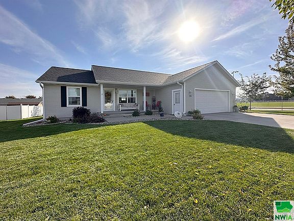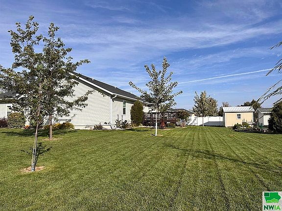 New Sioux Center listing in Country View! This home has so much to offer including 1,372 square feet of functional living space, spacious corner lot with established lawn, trees and landscaping, large deck perfect for entertaining, 2 stall attached garage and storage shed, along with convenient location, quality construction and meticulous care! The functional main floor is home to an open concept living room with wood accent wall, kitchen with island and pantry, dining space with deck access, master bedroom with full bath en-suite and walk in closet, along with 2 additional bedrooms, full bath and laundry! The full, partially finished basement offers large living room, bedroom and full bath, with option to finish additional bedroom, storage and mechanical! Located close to schools, Dordt University, parks and bike trail access, all appliances included and move in ready!