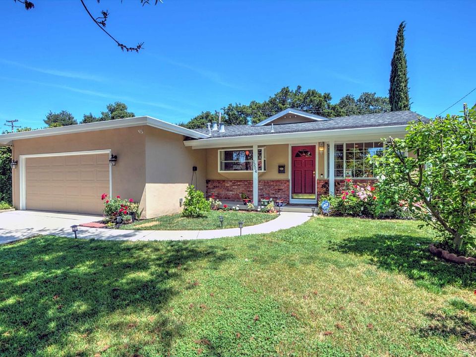 Tucked in a quiet and safe neighborhood, this 4 bedroom, 2 bath home is gorgeously updated. Open, bright and airy floor plan is ideal for family enjoyment and entertaining. Large remodeled kitchen with cherry cabinets, granite counter-top, newer stainless steel appliances, designer tile floors. Family room overlooks the beautiful backyard. 4 large sunlit bedrooms with closet organizers. Large master bed overlooks backyard. Recessed lights, hardwood floors, dual pane windows, crown molding and baseboards throughout. Newer Presidential roof. Copper plumbing. Security system wired-in. Large 2-car finished garage with electric roll-up door. Backyard boasts of stoned tiled patio, lush green grass. Several fruit trees. Very convenient location with easy access to Hwy 85, 280 and Lawrence Expwy. Tesla solar panel equipped. Walkable to Calabazas park (0.2 miles) and Calabasas library (0.4 miles). Top Cupertino schools - Nelson Dilworth Elementary, Miller middle and Lynbrook high.