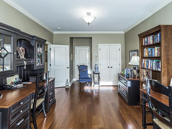 Charming carriage style cottage with flare! Features master and a second bedroom with on suite bath on the MAIN level. Open plan. 9' ceilings & Hardwoods on the main level. Granite tops & upgraded appliances. 2 story great room. Private back area with large screened porch. Lush landscaping will be a delight in the springtime. Upstairs has a bonus room, bedroom & bath plus storage. This home is better than new.