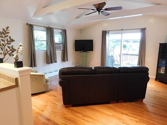 You must see this upscale 2 bedroom ranch with an exceptional open floor plan. This well maintained home offers hardwood floors, a huge master bath with a shower & a Jacuzzi tub (never used). It also has a very private deck over looking a large back yard & trees with a winter water view. This home is clearly not a drive by as it is much larger with the living room bump out (with a cathedral ceiling) off the back of the house.