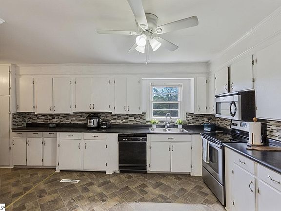 Beautiful 3 Bedroom Home on almost 1 acre in Belton! 3 Bedrooms, 1 Bathroom, Approx. 1555sqft; Extra Large Kitchen with tons of cabinets; Stainless Steel Appliances; All appliances to remain including the fridge & washer & dryer; Laundry Room is off the kitchen area; Extra Large Dining Room; Master Bedroom has a sitting area; Sunroom Heated & Cooled 22x12; Home has lots of updates; Roof is only 2 years old; HVAC is almost new; Lovely original hardwood floors, along with newer hardwood floors. Xtra large master bedroom with plenty of room to add a master on-suite bathroom adding instant value. Only 30 min drive to Greenville. Rocking Chair front porch; 2 car garage is 600sqft Sellers are relocating for new job. Home is VA Qualified; Schedule your showing today.