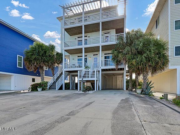 Multi-level oceanfront condo located in the heart of Carolina Beach. Enjoy sweeping views of the ocean at the rear of the condo and views of the canal from the front. There's even a private walkway to the beach and outdoor shower. Ready to stay home and lounge? There's also a saltwater pool, tiki bar, and fire pit - perfect for enjoying hot summer days and cool fall evenings. In this condo, there's plenty of room for everyone, because it has 5 bedrooms and 5.5 bathrooms, including an oceanfront primary suite with an adjoining office space. On the ground level is a 22'x19' unheated storage space perfect for all your beach toys. There's also an elevator that can take you up to the bedrooms on the third level or the main living area on the fourth level of the building, which has vaulted ceilings with exposed beams and tongue and groove boards. Love to cook? The kitchen has a 5-burner gas cooktop, solid surface countertops, tile backsplash, stacked cabinets, and a walk-in pantry. Of course, living at the beach means sand, but cleanup is easy with ceramic tile in the main living areas and luxury vinyl plank flooring in the bedrooms. A home warranty is included for added peace of mind. This building has two units and plenty of parking. The estimated annual gross revenue of this unit is over $158,000. This condo can be purchased separately or as a package with unit 2 - MLS #100405476.