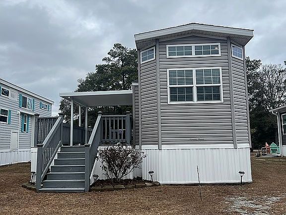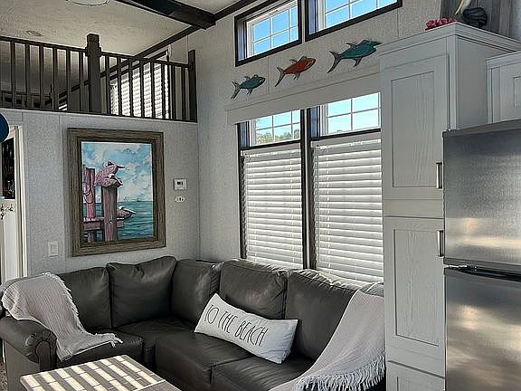 Residing within Bogue Sound Resort minutes from the beaches of Emerald Isle, this gorgeous 2021 Country Manor park model offers the perfect blend of coastal charm and community with amazing views of the Intracoastal Waterway just beside the bridge. This 1-bedroom, 1 bath home offers a large loft to accommodate guests. With a large kitchen including a full size refrigerator, gas stove, and farmhouse sink, you’ll be able to enjoy weekend getaways or your new coastal home. Warm up by the electric fireplace in the living area while enjoying a movie, as internet and cable are offered at no extra cost. Used golf cart included. This quiet, pet-friendly community houses over 100 park models. There are many accommodations, including an outdoor community pool, laundry facility, playground, floating dock, boat lift, fish cleaning station, and seating by the water. Planned accommodations also include a grill near the pool, dog park, pickleball court, and enhanced clubhouse. Whether seeking a weekend escape, a seasonal retreat, or a permanent residence, this park model offers the perfect blend of comfort and convenience in a coveted coastal setting. Call Grace, as this won't last long!